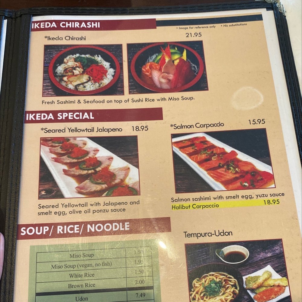 Ikeda Japanese Dining, located in Huntington Beach, offers a wide range of Japanese cuisine in a casual setting. With options for sushi, sashimi, and bento boxes, their lunch menu provides a satisfying meal for a great value. The Izakaya style appetizers like the garlic edamame and crispy rice with spicy tuna showcase unique flavors. Their salads, including the seaweed salad and sashimi salad, offer fresh and vibrant choices. Customers have praised the fresh and delicious sushi rolls, like the King Kong Roll and Jason's Roll, for their flavor and presentation. The service at Ikeda is top-notch, with friendly and attentive staff ensuring a pleasant dining experience. Overall, Ikeda Japanese Dining impresses with its variety of dishes, fresh ingredients, and excellent service.